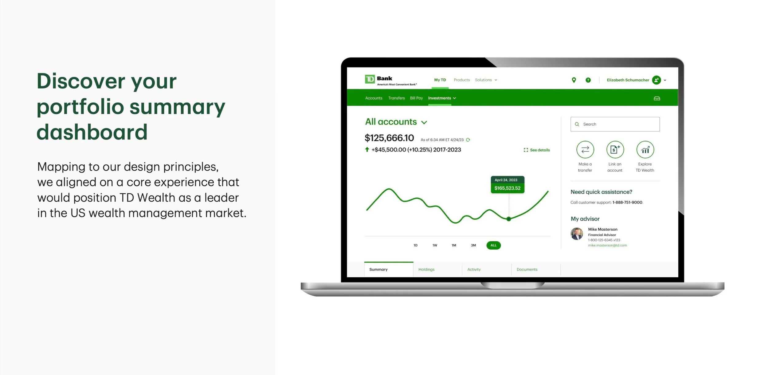 A ‘One TD’ customer experience, with intuitive navigation, bridging retail and investment accounts.